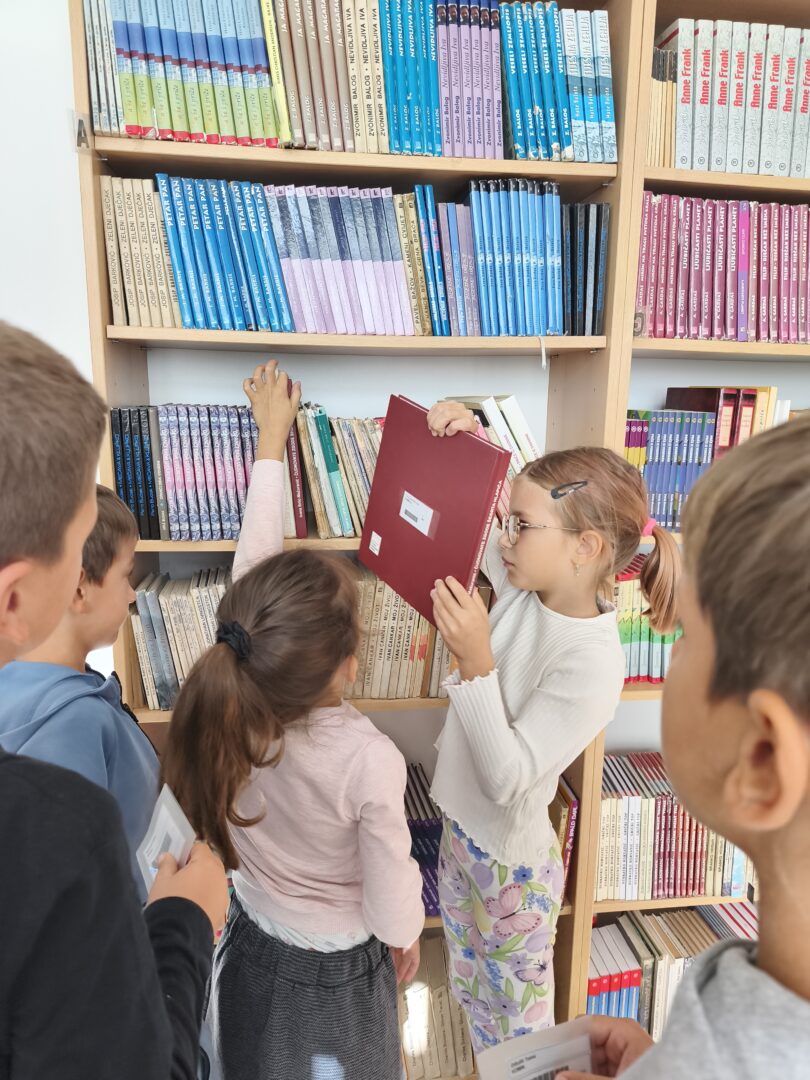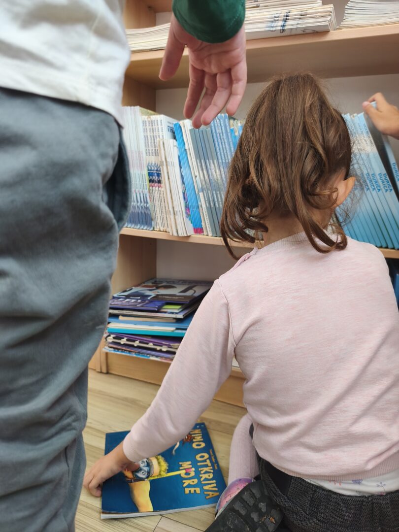 Osim toga, naši najmlađi su posjetili školsku knjižnicu. Uzbuđeni i znatiželjni, upoznali su se s prostorom knjižnice, pravilima posudbe knjiga te važnosti čuvanja knjižnične građe. Knjižničarka im je pokazala razne zanimljive knjige za djecu, slikovnice i enciklopedije te im pročitala jednu kratku i zabavnu priču.