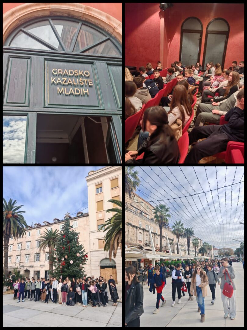 Dana 8. prosinca 2025. učenici predmetne nastave naše škole sa svojim su nastavnicama hrvatskoga jezika posjetili Gradsko kazalište mladih u Splitu. Ovoga puta imali su priliku uživati u predstavi “Zlatokosa”. Na simboličnoj ravni priča govori o darovima koje pojedinci posjeduju i koji moraju pripadati svima, a ne smiju biti korišteni u sebične svrhe. Radnja posebno ističe veliku snagu ljubavi, roditeljske i partnerske, koja uvijek iznova stvara čuda. Veselimo se ponovnom posjetu kazalištu.